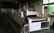 2、外形尺寸(約):總長24500mm*總高1740mm*總寬1890mm,地面到網(wǎng)帶的高度為950-1050mm,爐體內(nèi)進(jìn)料高度為150mm;烘干部分總長14000mm,分7段獨(dú)立控溫(每段4個(gè)測(cè)溫?zé)犭娕迹慷?000mm。冷卻段長4000mm,UV區(qū)2000mm,前后緩沖區(qū)各長500mm,進(jìn)料部分長2000mm,出料部分長1500mm, 爐體前后大梁上方裝有急停開關(guān),共4個(gè)。